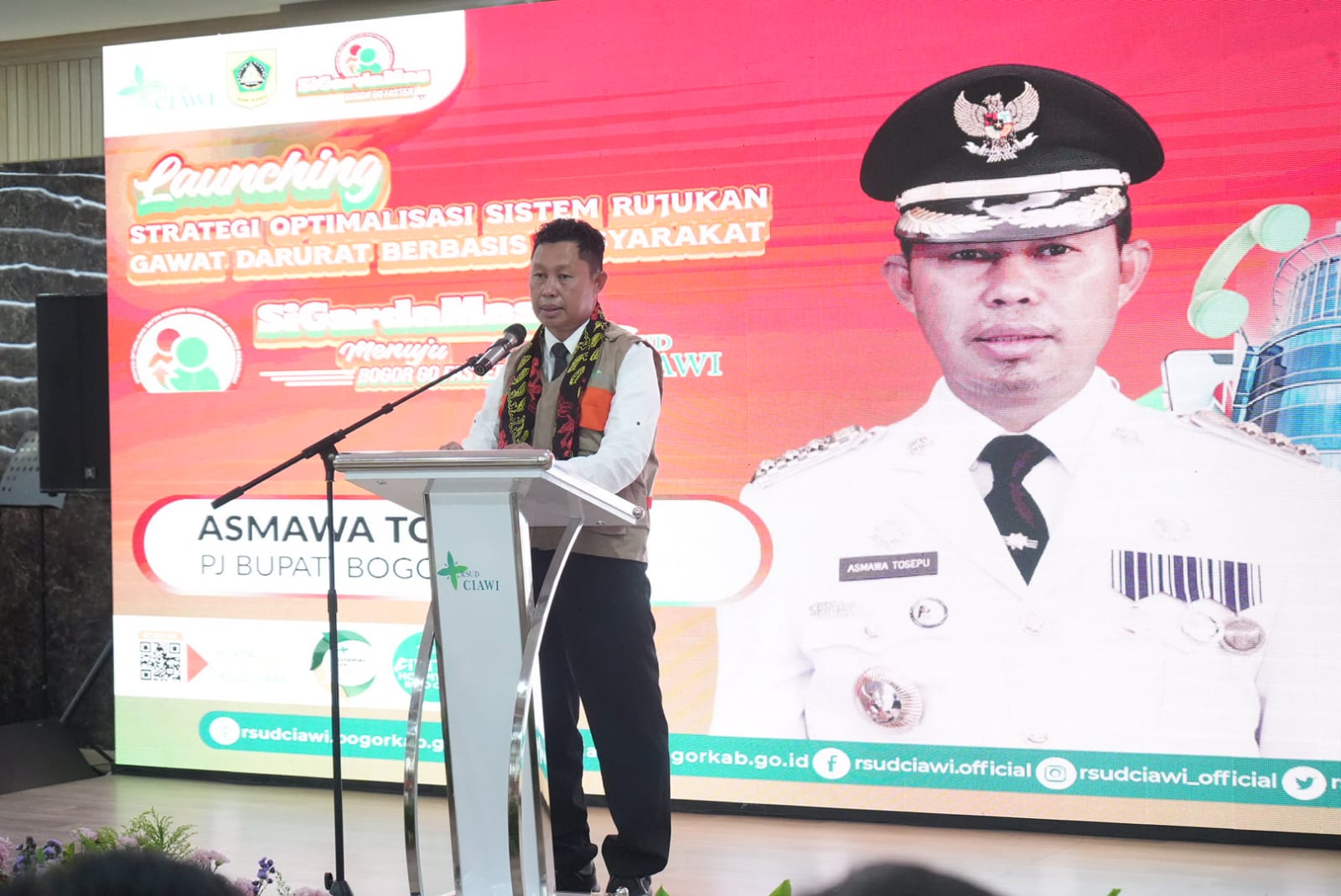 Pj. Bupati Bogor, Asmawa Tosepu menyampaikan apresiasi dan terima kasih atas diluncurkannya Strategi Optimalisasi Sistem Rujukan Kegawatdaruratan Berbasis Masyarakat atau SiGardaMas. Ini adalah ide yang menurut Kepala Dinas Kesehatan Jawa Barat sudah lama dirindukan di Jawa Barat, dan alhamdulillah baru Kabupaten Bogor yang memulai.